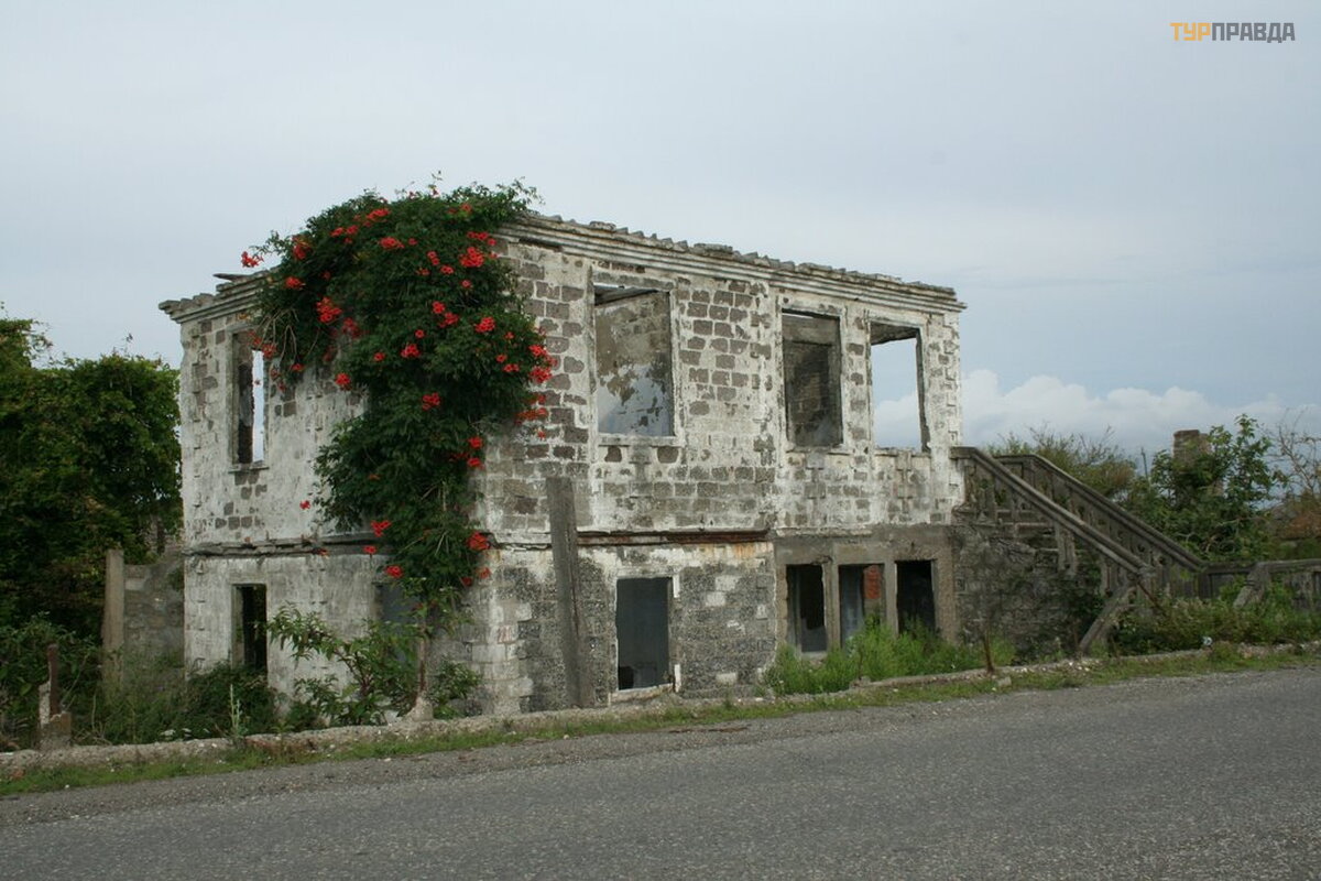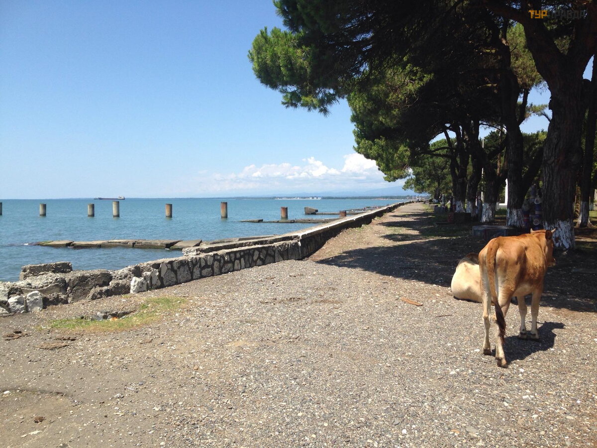 "Райский уголок" Цандрипш- зашуганная деревенька с пыльными колдобинами вместо дорог на отшибе нищей страны с ж. д. на пути к пляжу, который загажен скитающимися по нему коровами и который никогда никем не убирается. Побывавшие там называют Цандрипш ВЗОРВАННОЙ ПОМОЙКОЙ. ФОТО: