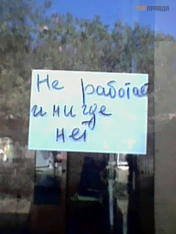 Skelbimas ant tuš č io Pitsundos paš to durų p>