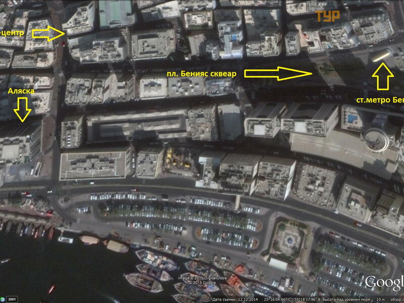 Как вышли на улицу, повернули налево и вперед. Для ориентира в здании где находится Аляска на первом этаже находится, хорошо видимый издалека Иранский банк - BANK SADERAT IRAN.