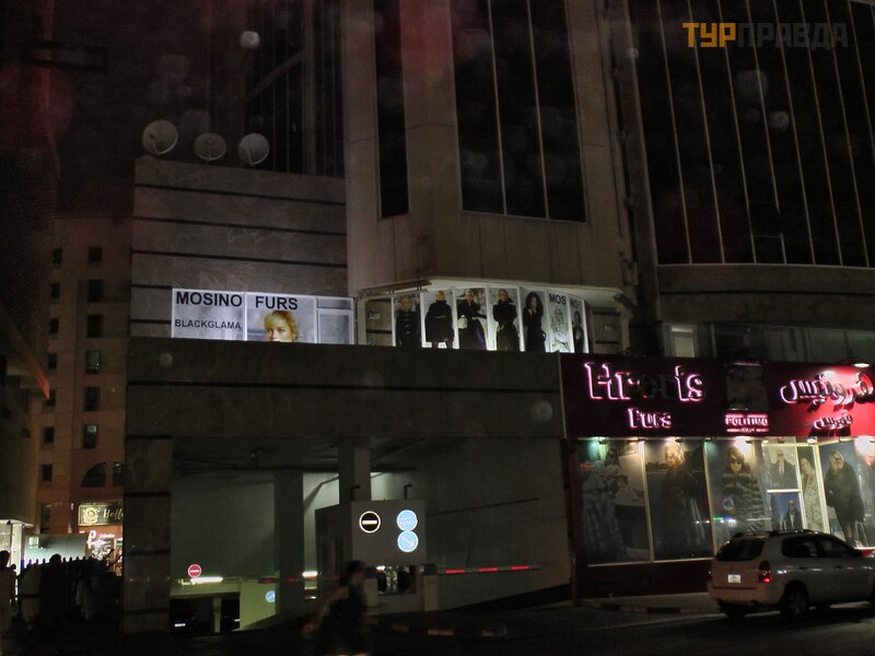 Начали мы утро следующего, посвященного шубам дня с посещения больших меховых центров. Первый - это Абраж Центр. Расположен метрах в 200 от площади Бенияс, если идти на запад по улочке идущей параллельно заливу.
