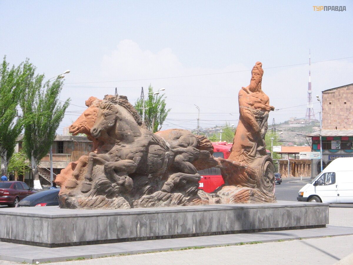 Paminklas Argiš ti I prie į ė jimo į Erebuni muziejų