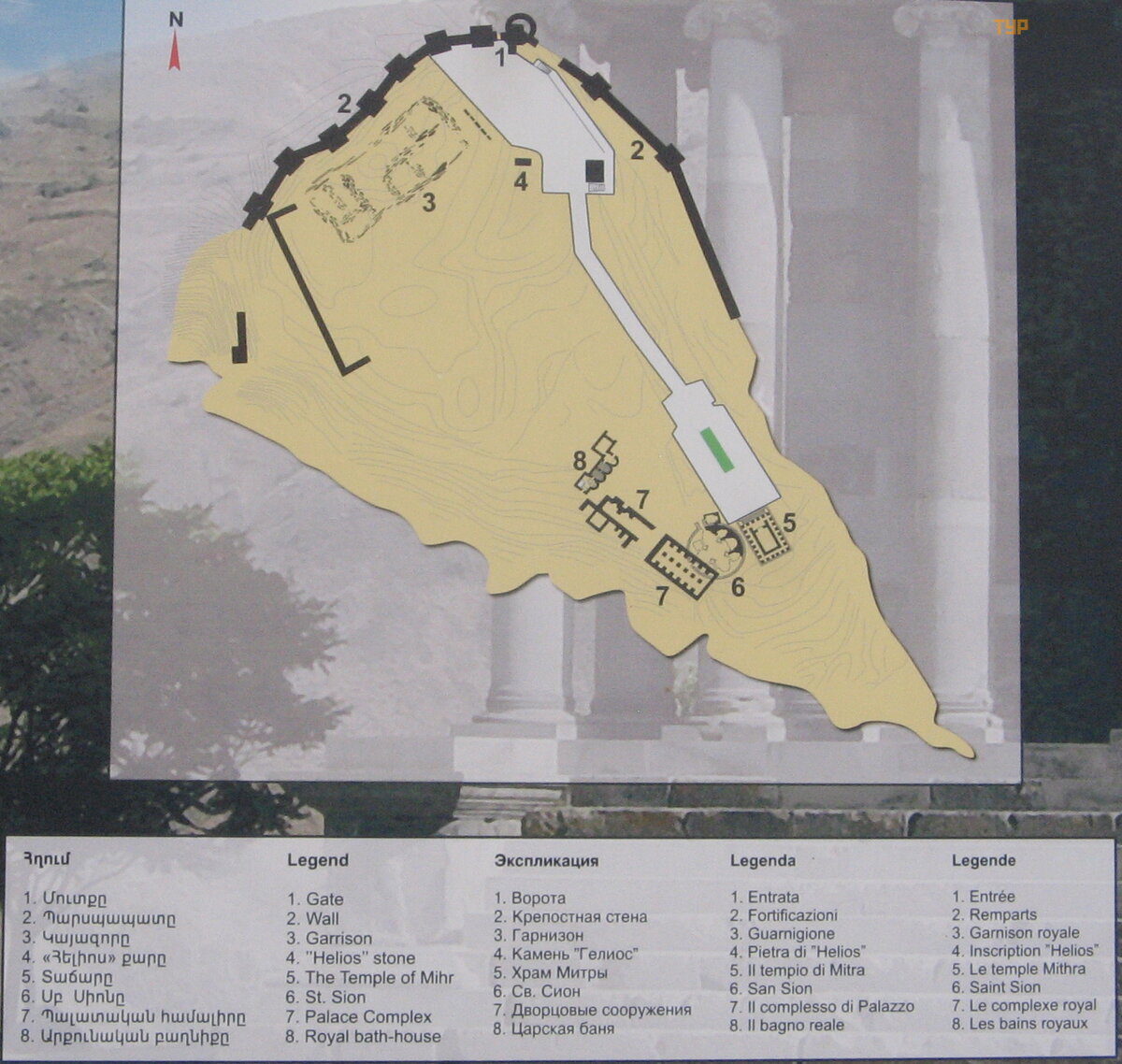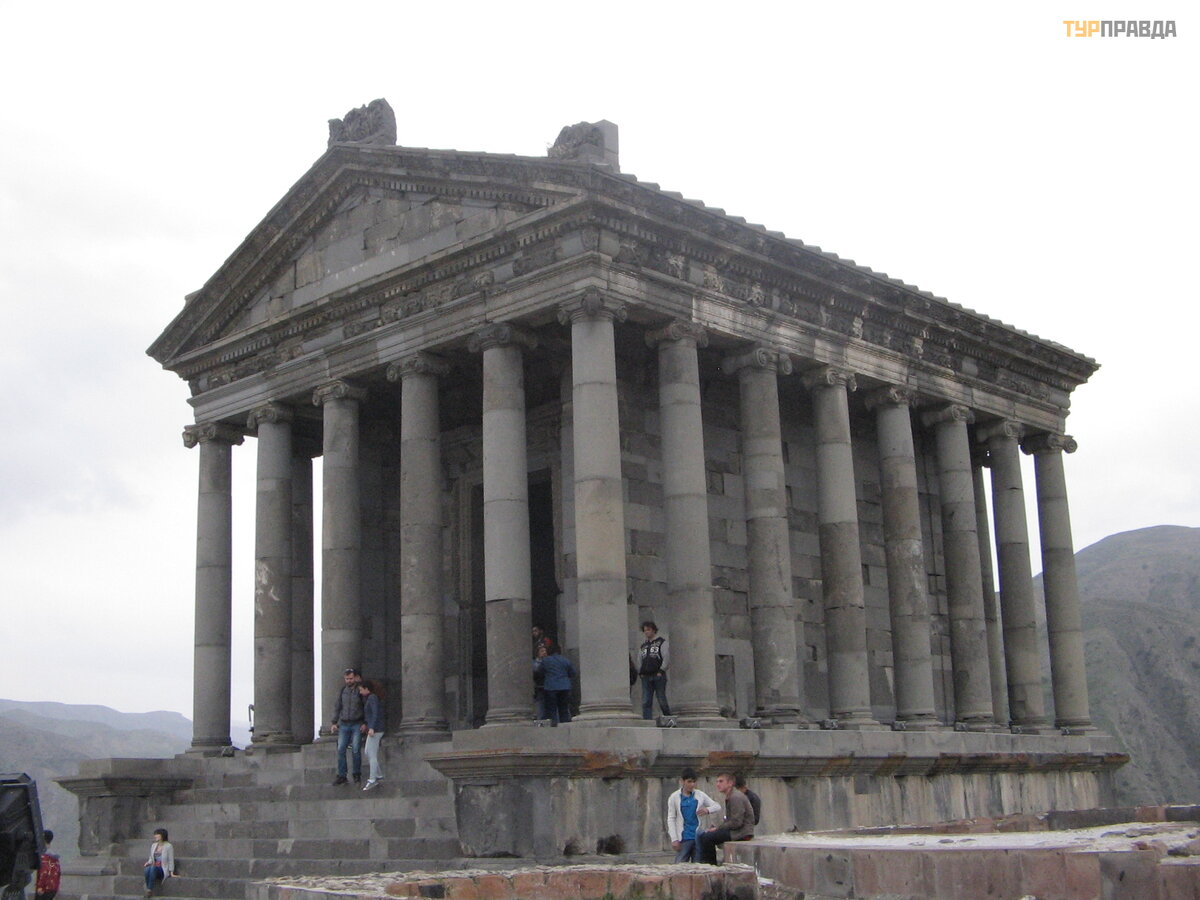 Po Asirijos smū gių Urartu valstija ž lugo. Praė ję s laikas. Prasidė jo helenizmo era. Iš Už kaukazė je iš likusių helenizmo epochos paminklų iš liko tikGarnio š ventykla [27]. Š ioje vietoje, ant stataus Azato upė s kranto (raš iau apie natū ralų „Akmenų simfonijos“ formavimą si apač ioje tarpekliu), galima pamatyti keletą objektų : š ventyklą , karališ kų jų rū mų griuvė sius, pirtis, krikš č ionių š ventykla, stela su urartiš ku tekstu, akmuo su už raš u graikų kalba; ir visa tai juosia tvirtovė s siena.