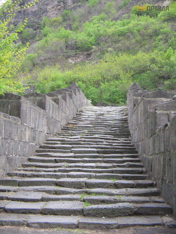 Š is tiltas yra geriausiai iš silaikę s iš viduramž ių . Jis buvo pastatytas kunigaikš č ių Zakarjanų sesers į sakymu. Viena jo pusė – laiptai, kita – horizontali, o vė liau – pakilimas į Sanahin vienuolyną . Parapetai papuoš ti liū tais, kaž kodė l iš simė tę ant akmenų kaip varlė s.