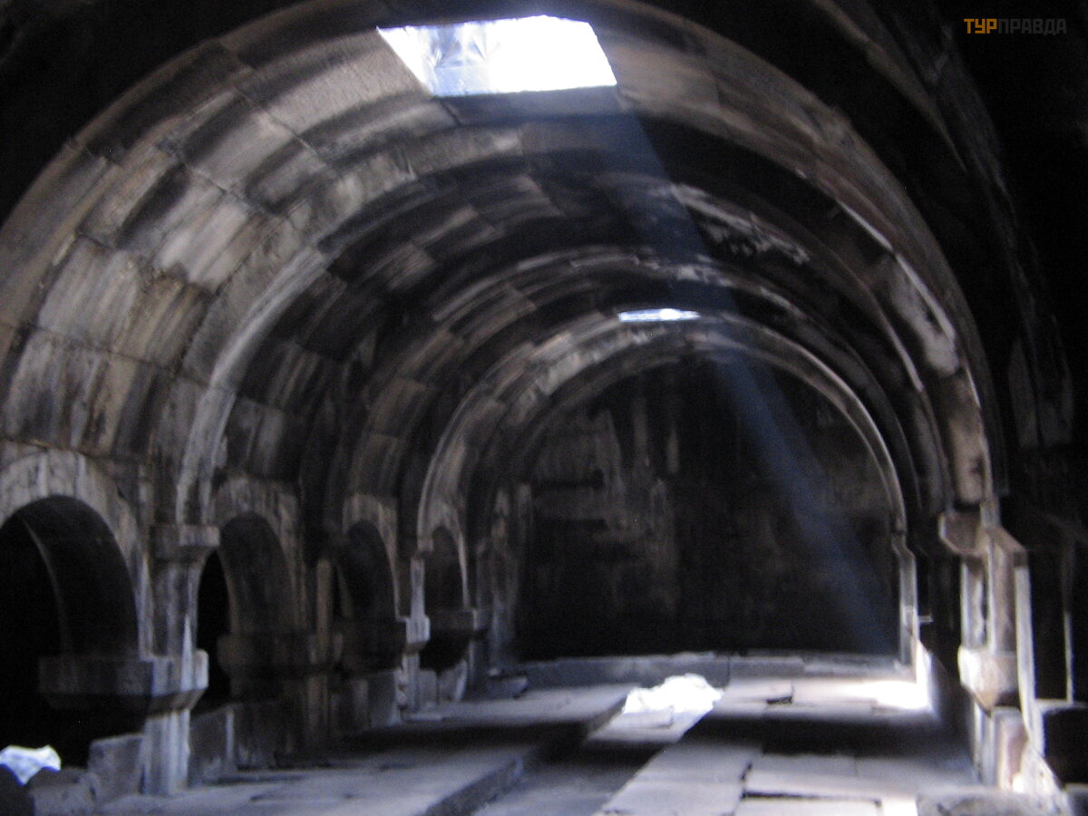 Viduramž ių Sanaino tiltas [7] per Debedo upę buvo iš saugotas nuo XII a. (Aš tarake yra senas tiltas, bet aš jo nemač iau - neraš au). Mes jo nepastebė jome, nusileidome prie upė s iš Odzuno ir pakilome į Sanahin vienuolyną . Jis į sikū rę s Alaverdi mieste. Vietiniai mums paaiš kino, kad lengviausia jį rasti palei vario gamyklą , judant pagrindine miesto gatve palei upę , bet ne M6, o kitu krantu. O, š io augalo sunku nepastebė ti: arba garai, arba rū kas, arba. . . Jis visą laiką buvo matomas virš visų tarpeklių ir uolų . Bet mes tyč ia važ inė jome po miestą ieš kodami tilto. Netoliese yra funikulierius į Sanahiną (ar minė jau, kad jis š iuo metu atnaujinamas? ).
