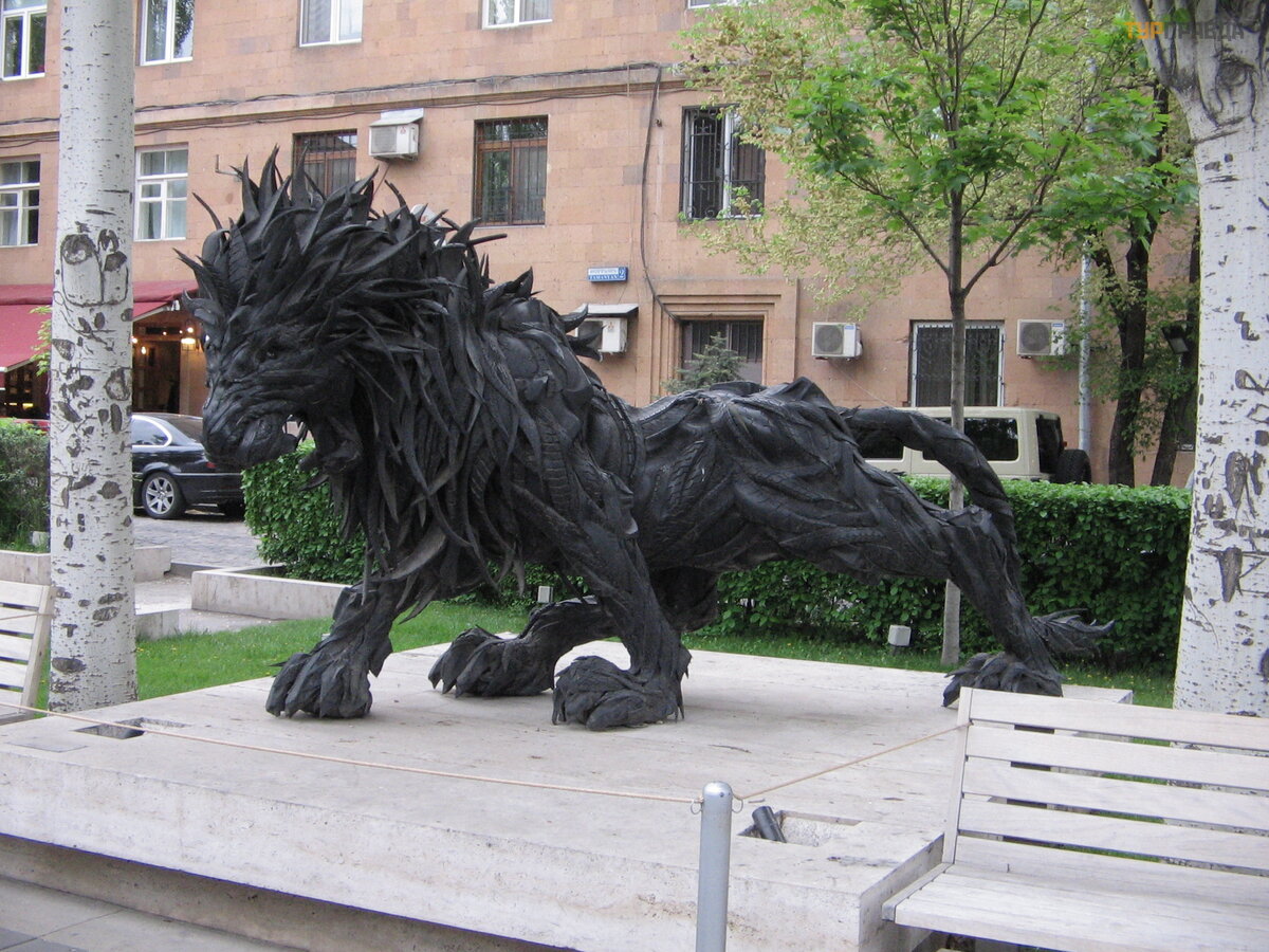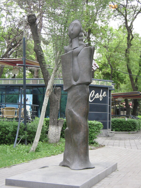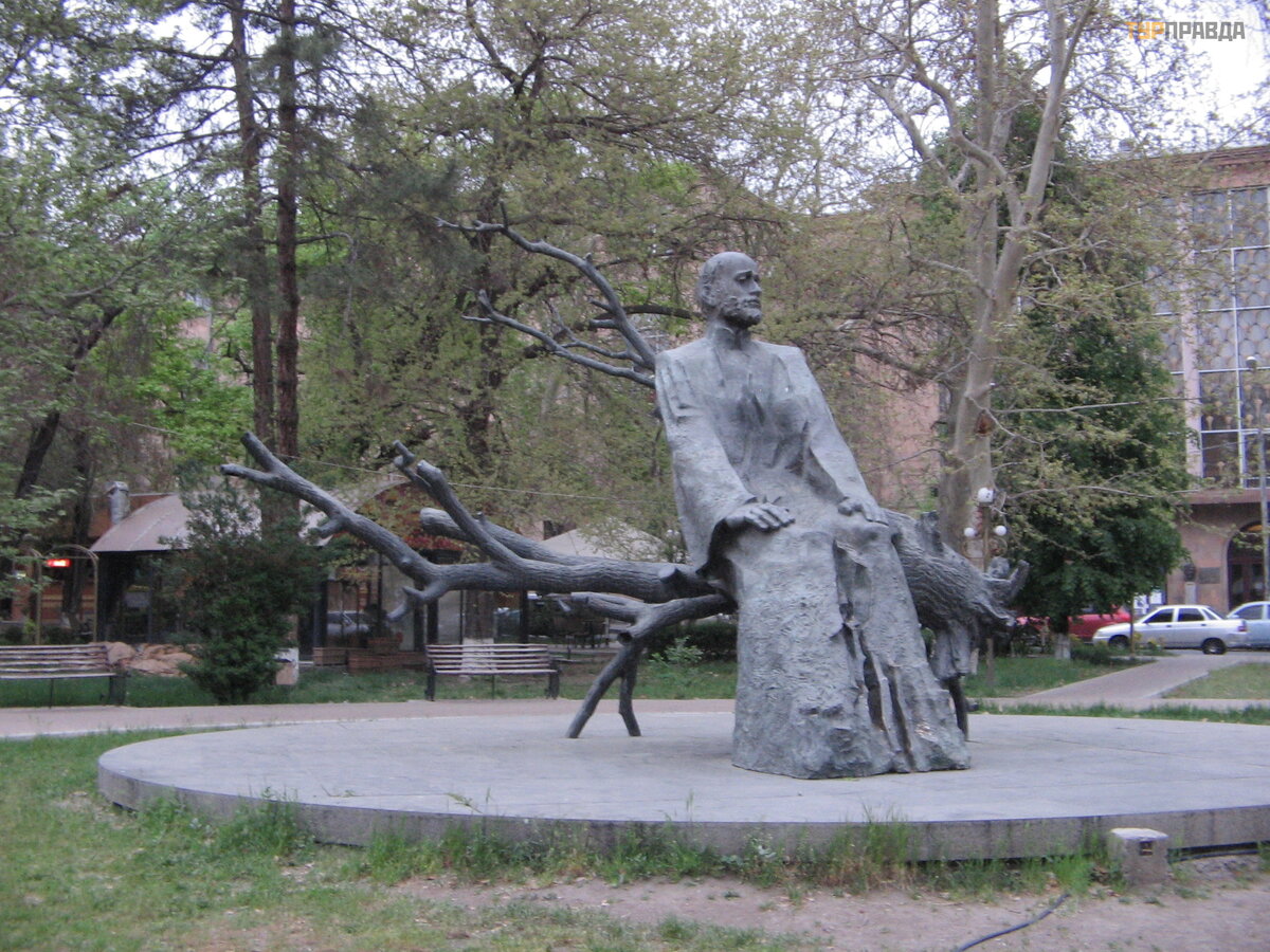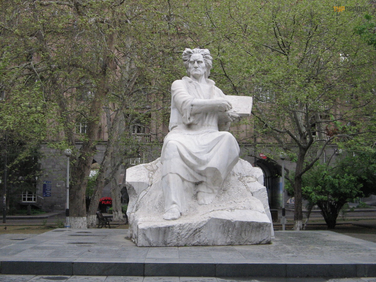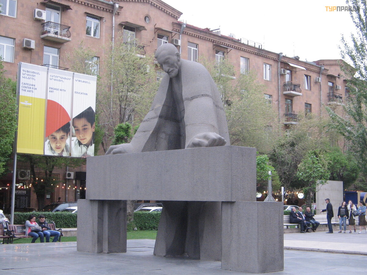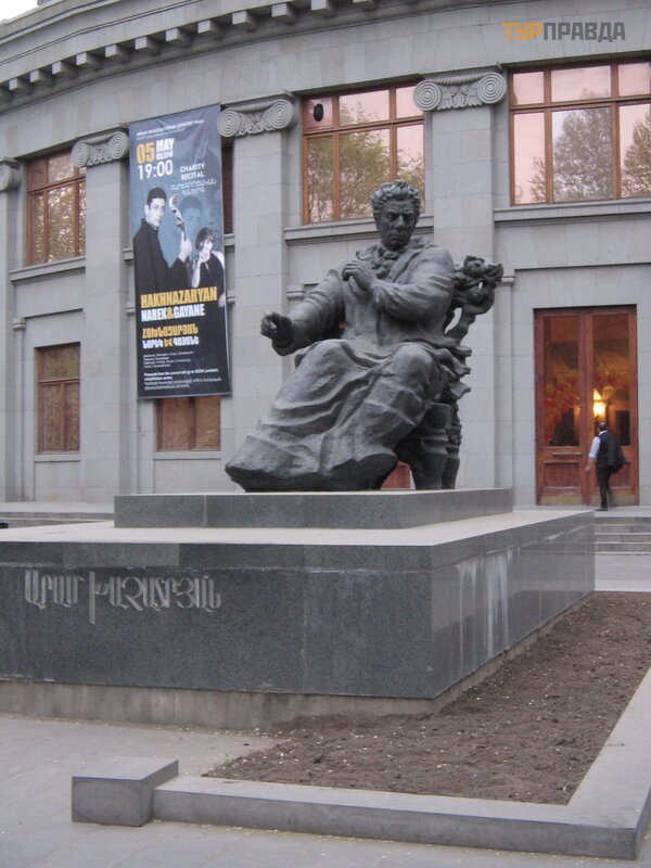 Prancū zijos aikš tė sklandž iai virsta Azatutyan aikš te. O per vidurį – Operos teatras. Spendiarova (kompozitorius ir dirigentas). Jį supa keli paminklai, kuriuos galima atpaž inti: prie į ė jimo - į Chachaturian, prie Gulbių ež ero (panaš aus į Sevaną ) - į Babadž anjaną . Aš apie juos nekalbė siu.