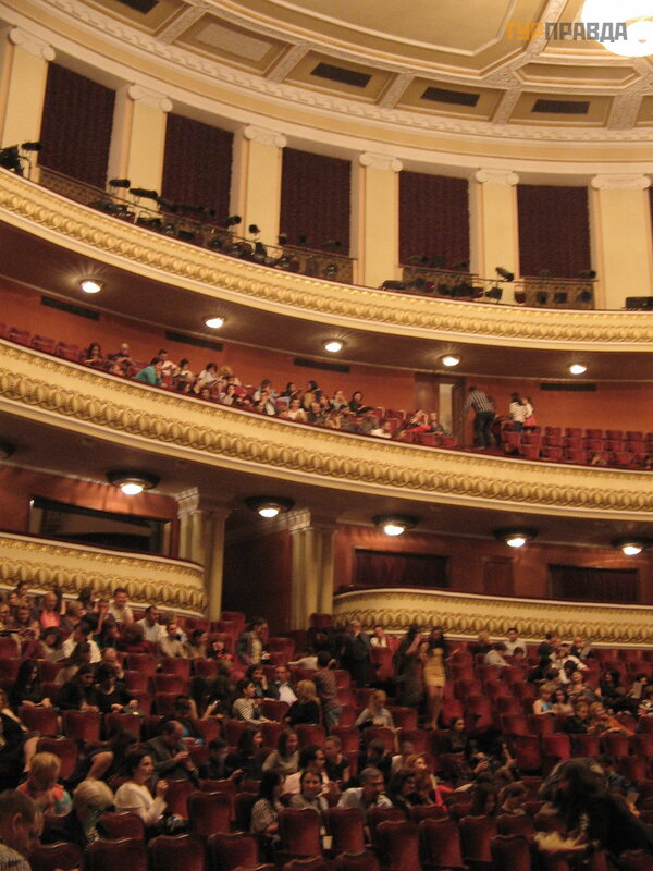 Mes dalyvavome Chač aturiano balete „Spartakas“ operos teatre. Tiems, kurie taip pat nori ten patekti, informuosiu, kad į ė jimas „už Chač aturiano nugaros“ nė ra į salę . Jei stovi veidu į paminklą , tai kairė je yra koncertų salė s bilietų kasa, deš inė je yra salė s, kurioje ž iū rė jome baletą , bilietų kasa, ten yra į ė jimas. Salė je patogu ž iū rė ti baletą : visos eilė s kyla aukš tyn. Tač iau vietiniai, atrodo, ten nesilanko: ten buvo beveik tik turistai.