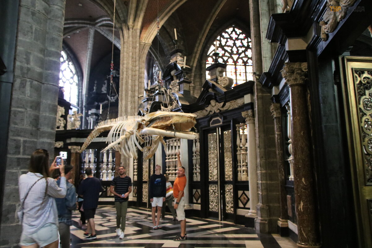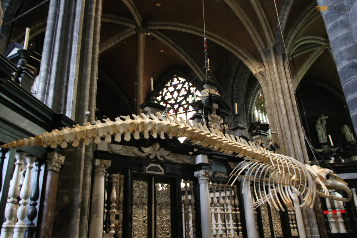 Почему то здесь подвешен скелет кита, для какой цели он находится в соборе, мне не ясно. Хотя услышала какую-то нелепую историю о пророке Ионе, хотя это больше похоже на легенду, чем на историю. Но все же зрелище интересное.