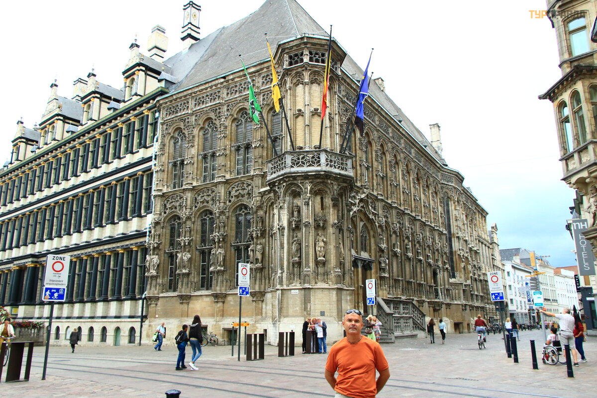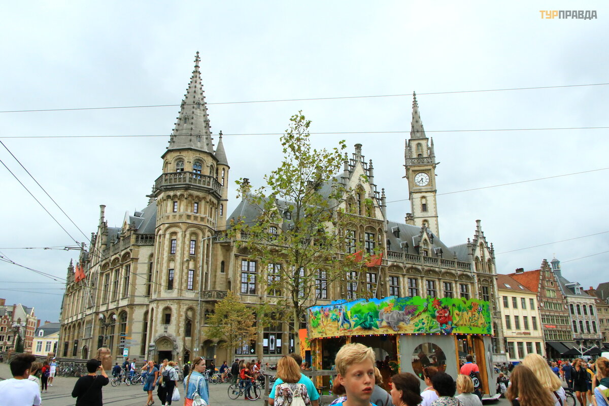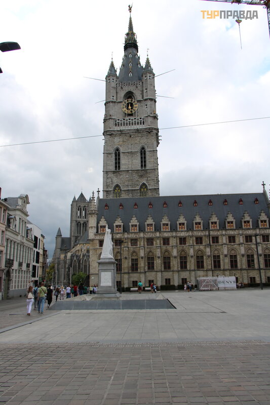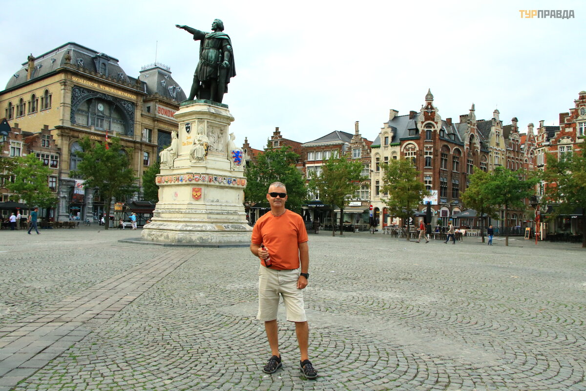 А какие красивые здесь площади. Одной из самых старых площадей Гента является Площадь Пятничного Рынка. А свое название получила потому, что еженедельно по пятницам еще с 12 века здесь собирается рынок, и это событие превратилось уже в традицию. Окружают площадь здания 15 -19 столетий, а в центре находится памятник Якоба Ван Артевельда – лидера антифранцузского восстания 14 века. Площадь, на удивление, пустынна, и мы спокойно посидели здесь в тишине, с удовольствием выпив по очередной бутылочке пива.