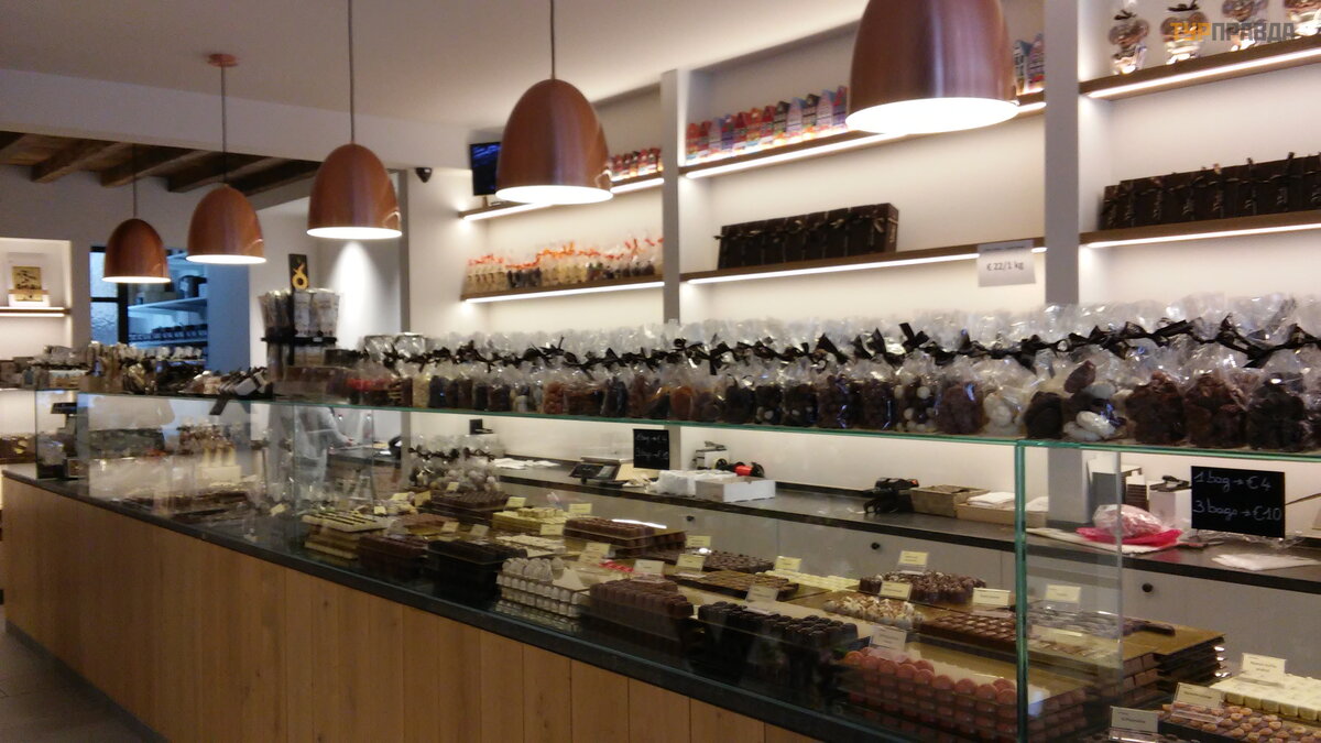 Если в Генте мы наслаждались пивом, то в Брюгге не могли оторваться от шоколада, аромат которого распространялся по всей окрестности, потому как в этом городе огромное множество всяких частных кондитерских и магазинчиков, предлагающих вкуснейшие шоколадные лакомства на любой вкус.