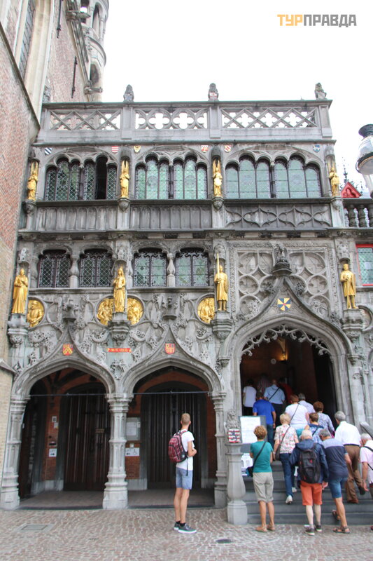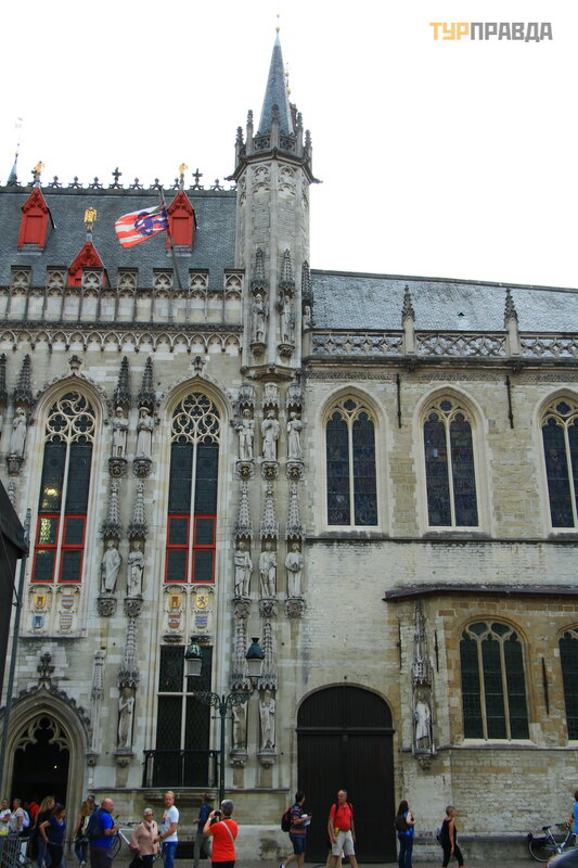 А вот самым красивым в Брюгге считают здание Городской Ратуши. Этот роскошный образец средневековой архитектуры красуется на площади Бург. Это одно из самых старинных зданий не только Брюгге, но и во всей Бельгии. (14 -15 век, строительство велось 45 лет). Этот архитектурный шедевр построен в готическом стиле, но мне он показался как будто сплетенным из кружев, и говорят, что, ни одна другая ратуша не затмила великолепие и богатство Ратуши в Брюгге.