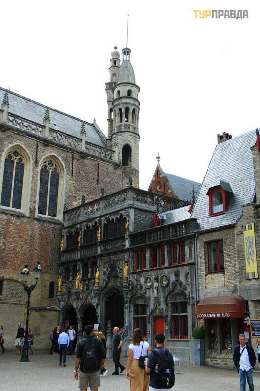 Со стороны городской площади попадаем в Базилику Святой Крови. Построена Часовня в 12 века в стиле поздней готики и ренессанса. Знаменита она тем, что в ней хранится священная реликвия – кровь Христа.