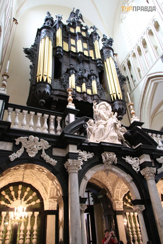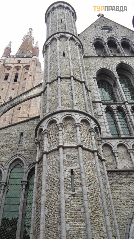 Я только не могу понять, башня вся из кирпича, каким образом она до сих пор не упала? Знаменита эта церковь еще и тем, что в ней находится скульптура Мадонны Микеланджело, а также величественные усыпальницы Марии Бургундской и Карла Смелого.