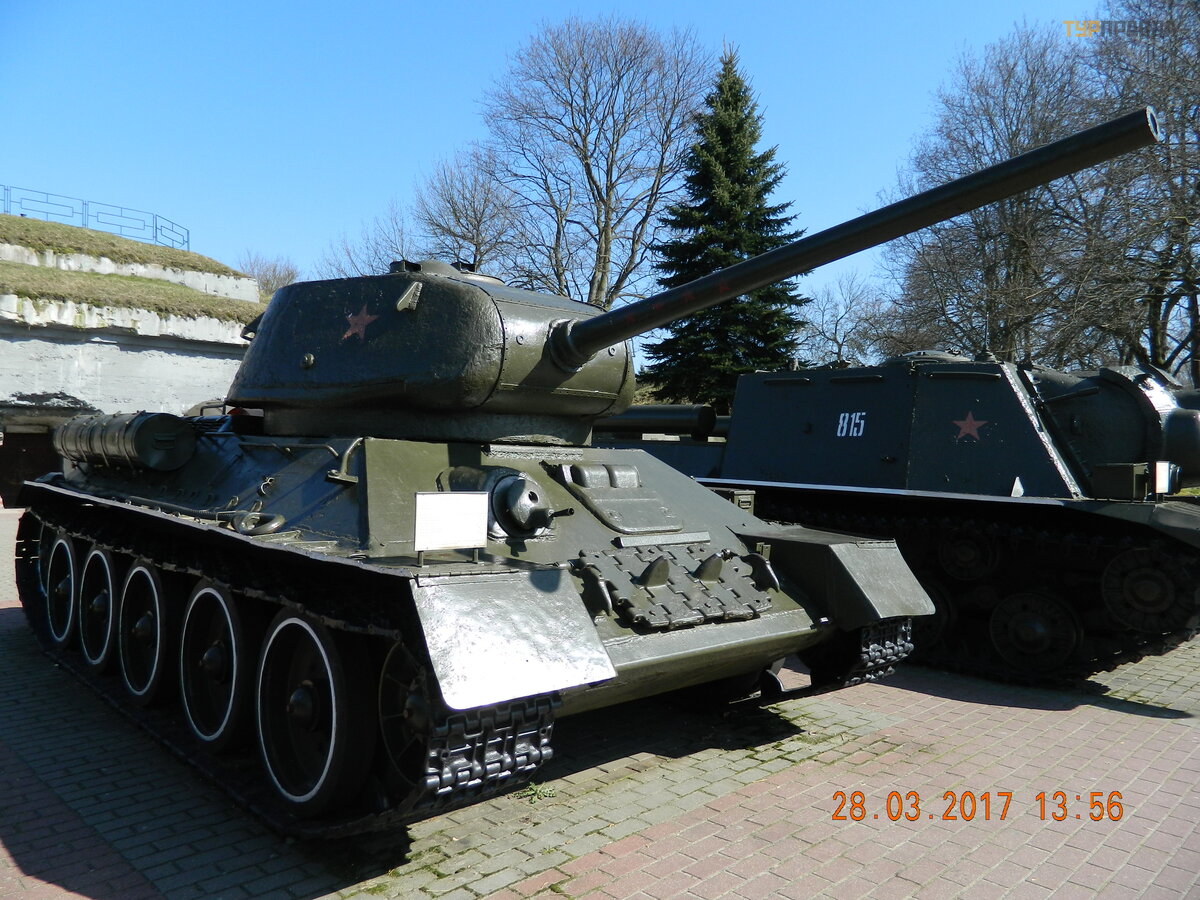 Немного дальше слева от входа на площадке военной техники можно полюбоваться легендарными Т-34