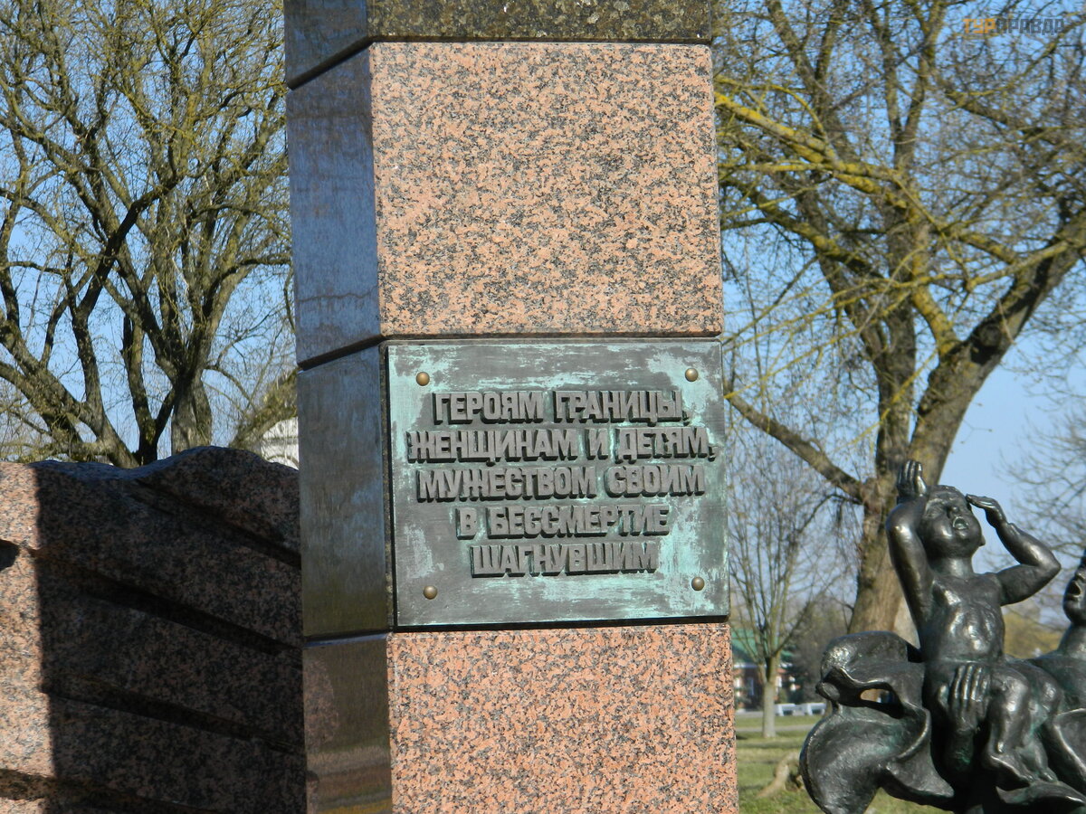 Paminklas buvo pastatytas ant pastato, kuriame karo pradž ioje buvo pasienio postas ir komendantū ra, griuvė sių , o pastatytas 2011 m. , iš dalies už Rusijos pasienieč ių surinktas lė š as. Ukraina ir Kazachstanas.