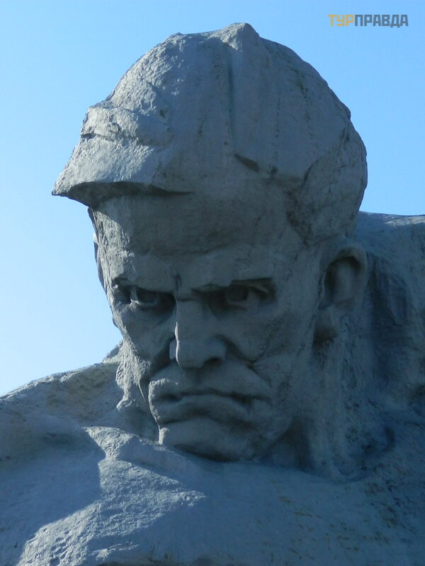 Водопровод в крепости был выведен из строя прямо в первый день войны. А в воде нуждались все: и люди, оборонявшие крепость, и орудия обороны – пулеметы. И вот казалось бы, река совсем рядом, а добыть воду невозможно: подходы простреливались немцами круглосуточно. И конечно, нужно отдать должное скульптору. Этот 13-метровый бетонный солдат, тянущийся огромной каской к реке…