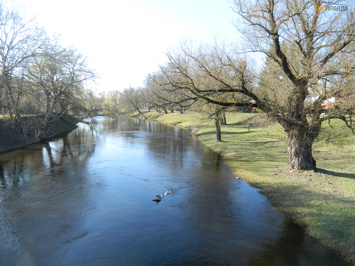 Į deš inę nuo upė s yra Baltų jų rū mų griuvė siai.