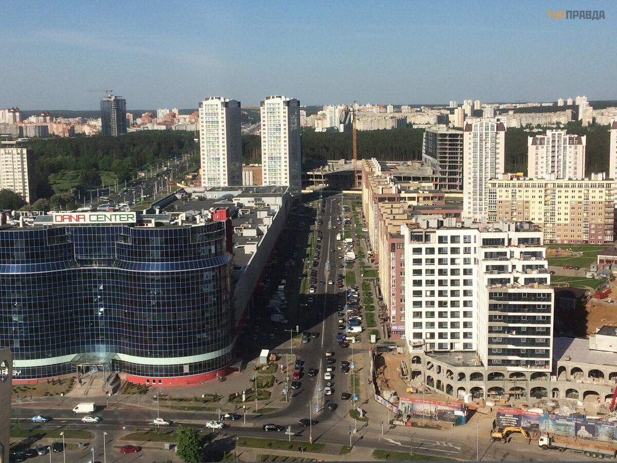 Svajojau, kaip pakutenti nervus panoraminiame lifte, bet tą dieną tai nepavyko, teko keltis tarnybiniu liftu, kuriuo, atvirkš č iai, mano maž asis bailys buvo patenkintas. O tada dar bijojo aukš tyn - tipiš kas š alia nukritusio obuolio pavyzdys: ))) Bijojo, nors neilgam, ū gio suvokimas už valdo. Š tai Minskas prie mū sų kojų ))
