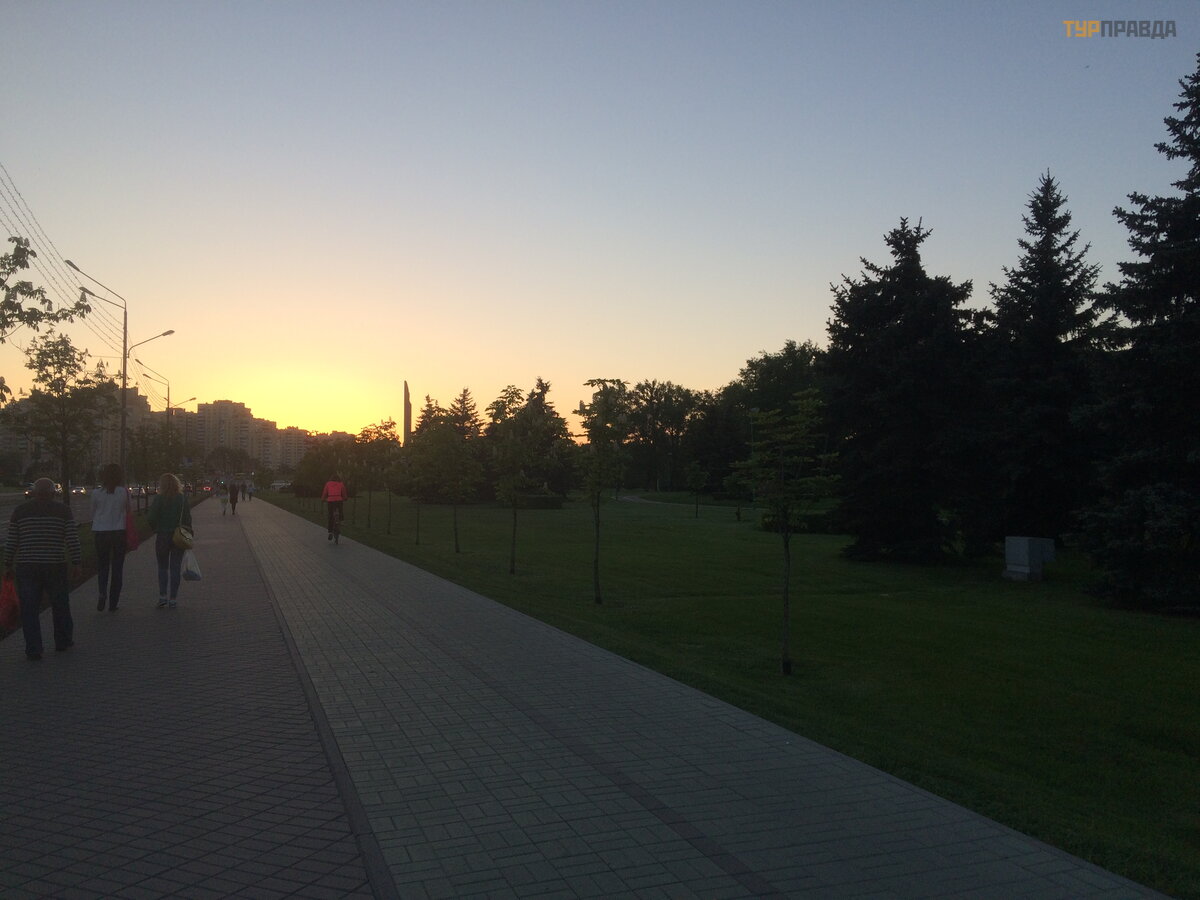 Сам проспект Победителей очень интересная улица. Здесь, сплошь спортивные сооружения, современные гостиницы и торговые комплексы, жилые кварталы и парковые зоны. В основном мы любовались из окна автобуса, и собственного фото не оказалось. Особенно хорош он в вечерней подсветке.