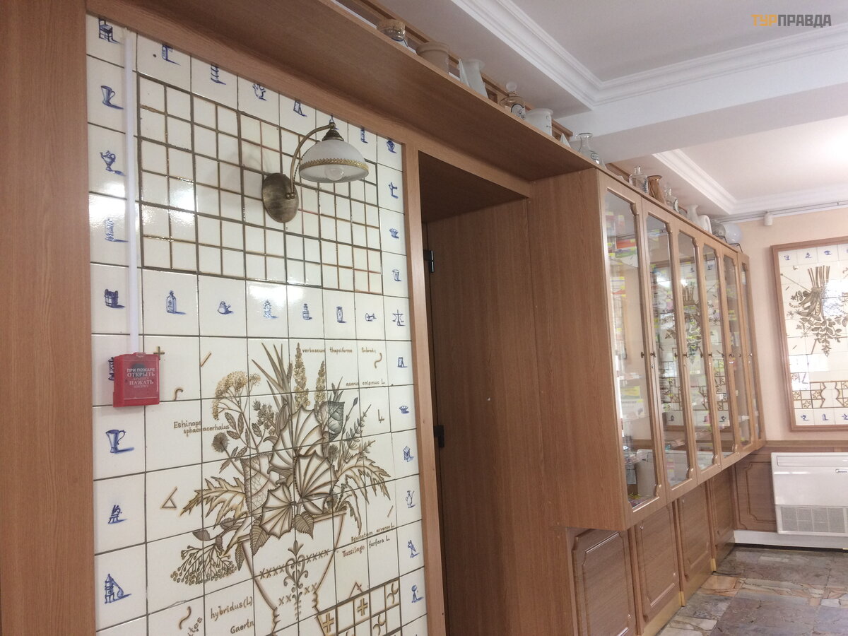 Aplankė me Trejybė s priemiestį , kur mums buvo parodyta seniausia vaistinė mieste. Tai ne muziejus, apskritai, eilinė veikianti vaistinė , bet atkuria dviejų š imtų metų senumo interjerus, galima pasiž valgyti po visokius praeities vaistinė s reikmenis.