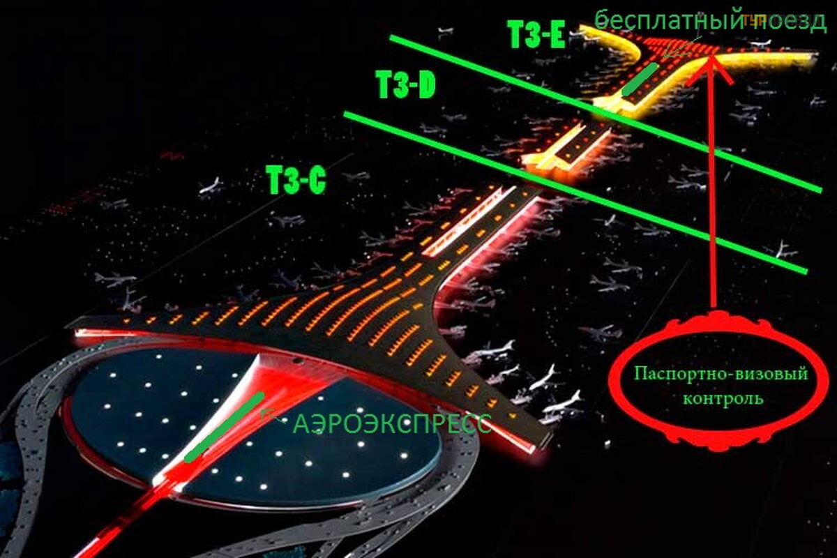 Pekino oro uostas yra toks didelis, kad 3 terminale yra traukinys. Tai nemokama.