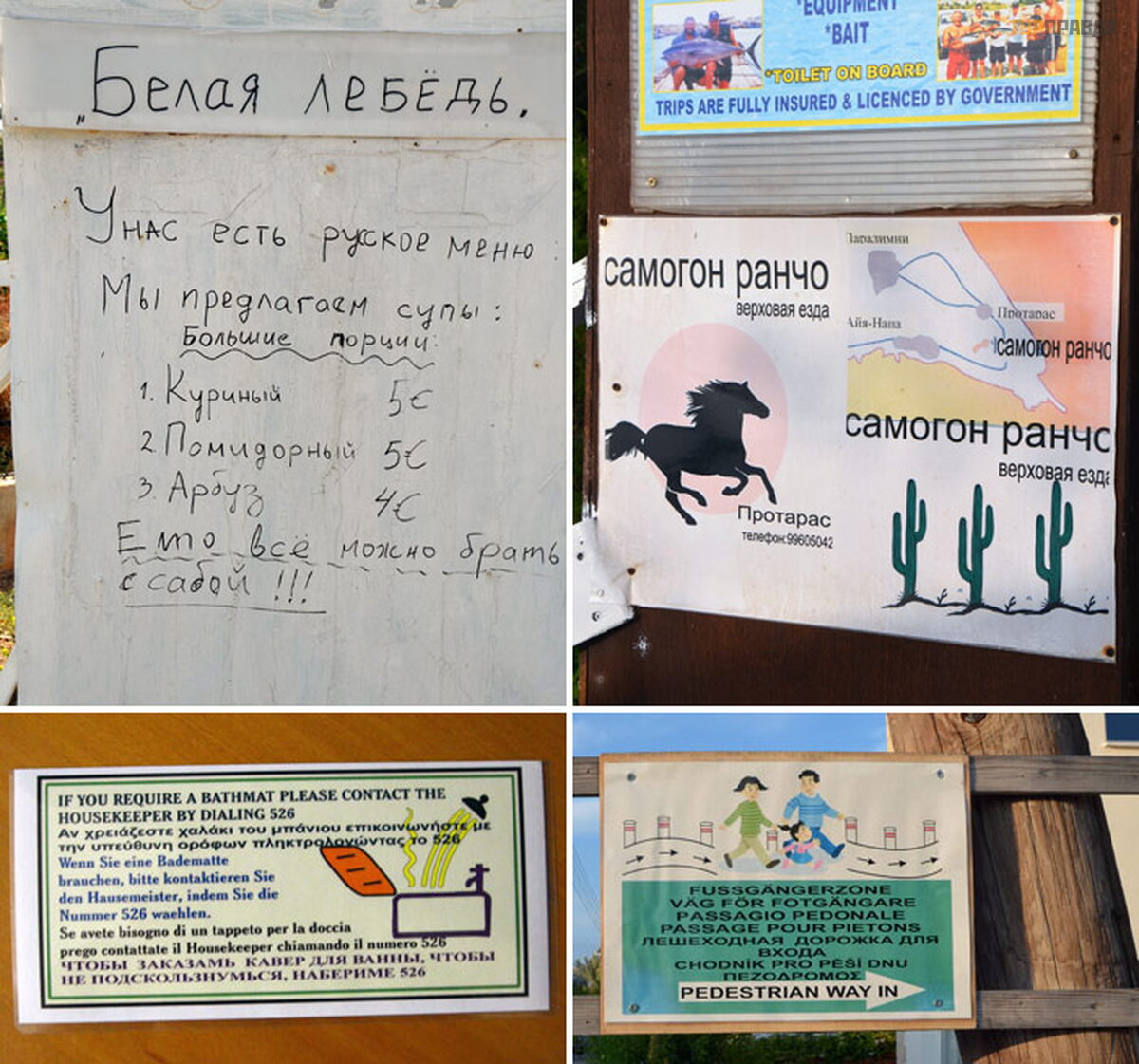 Siekdami į tikti rusakalbiams turistams, kiprieč iai verč ia ne tik restorano meniu, bet ir kitą naudingą informaciją . Ir kartais tai atrodo labai juokingai: