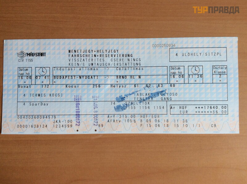 Nedidelis paaiš kinimas apie Vengrijos gelež inkelių specifiką . Vietinių traukinių (į skaitant tarpmiestinius) bilietai parduodami be sė dimų vietų ir galioja tris dienas nuo pardavimo datos. Bet tarpmiestyje vis tiek reikia atskirai nusipirkti vietos rezervaciją (biliete rodoma 300 Ft + bilietų kasos mokestis 410 asmeniui, o pats bilietas nuotraukoje atskirai 5160) Kasoje jis (rezervavimas) buvo parduotas mums tuoj pat. Vietų rezervacija galioja tik š iam konkreč iam traukiniui. O jei praleidote, pirkite vietų rezervaciją dar kartą .