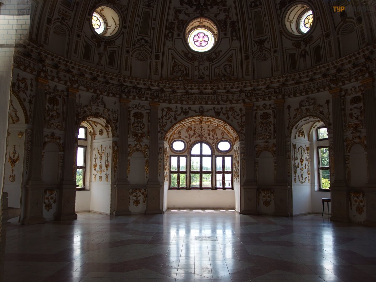 Paskaitykite aukš č iau esanč ios pilies istoriją : iš pradž ių buvo bokš tas, paskui gotikinė pilis, tada savininkas iš vyko į Italiją , o rezultatas tas pats - renesanso stiliaus pilis : ))) Bet graž u - velniš kai tai! Oi, pamirš au, kilo gaisras. Didž ioji dalis rū mų sudegė . Dalis patalpų restauruotos XIX a. 40-aisiais. Ir galiausiai pilis buvo atstatyta XX amž iaus pabaigoje.