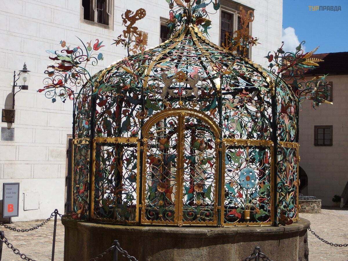 Pilies š ulinį puoš ia tokia „linksma“ į vairiaspalvė XVII amž iaus pradž ios grotelė .