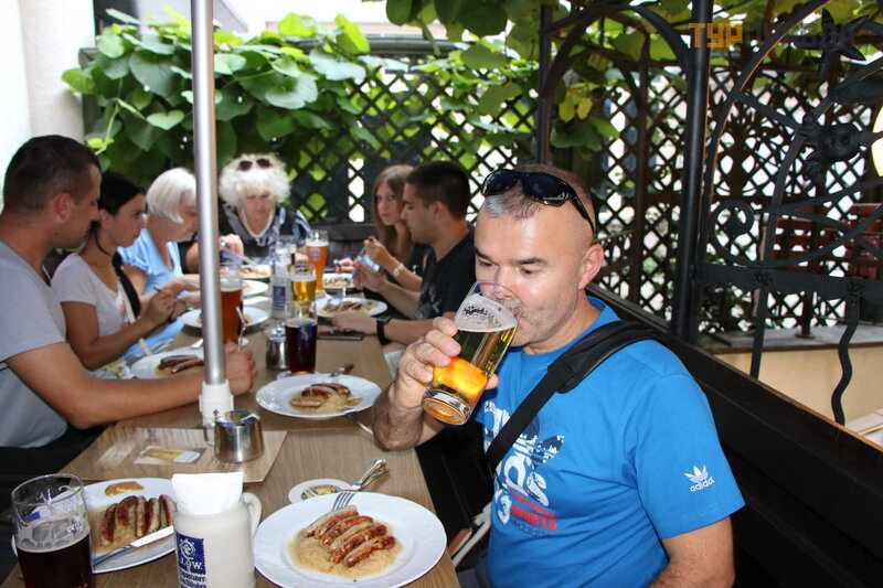 O mes, pamatę karališ ką ją Vitelsbachų rezidenciją , nuė jome ragauti Bavarijos, kitaip kokia bū tų Bavarija be alaus ir deš rų ? Pirmiausia už sukome į garsiuosius alaus namus „Hofbrä uhaus“