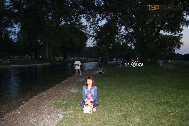 А потом мы пошли гулять по вечернему Мюнхену и забрели в « Английский сад»( идти по главной торговой улице « Максимиллианштрассе», пройти через парк « Хофгартен»(как раз это парк королевской резиденции), пересечь Принцрегенштрассе и вы попадете в английский сад.