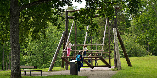 По белой деревянной лестнице можно спуститься к променаду возле озера.