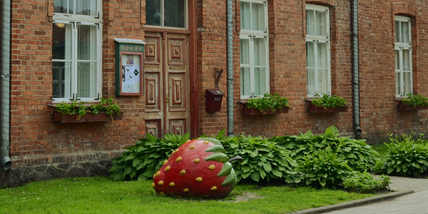 Огромная бетонная клубничина встретит вас по приезде в Вильянди. Гуляя по городу то здесь, то там вы будете встречать ее бетонных "сестер". Хвостики клубничин указывают направление к художественному центру Кондаса. Пауль Кондас - известный в Эстонии художник-наивист, его кисти принадлежит картина "Поедатели клубники", входящая, по утверждению путеводителя, в "сотню лучших картин мира".