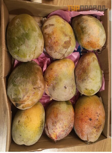 Su savimi pasiė mė me 7 kg (9 vnt. ) sverianč ią dė ž ę , kurios kilogramas kainavo 4 USD. Mangai prinokę ir skanū s! Praė jus dviem savaitė ms po grį ž imo į Kijevą , liko dar trys kū riniai, visi puikiai iš silaikę