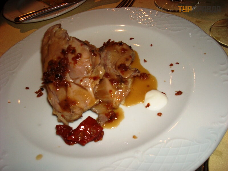 Не могу забыть « пасту с кроликом по -… со специями» , заказал – принесли очень похожее кушанье на наши « макароны по- флотски» . Я то надеялся, что хотя бы будет кусок крольчатины, а это оказались кроличьи крошки на макаронах. Посмеялись! Про рестораны больше писать не буду, по – моему достаточно. Были во время Дня Италии и торты со свечами, и представления с песнями наших поваров и официантов, отмечались и дни рождения, и другие юбилеи. После ужина развлекательные программы : театр, музыка живая во всех барах от классической до джаза, кто-то хочет попытать счастья в Казино, на корме – дискотека с выбором « мисс Сплендида» . На следующий день у нас отдых в море и Капитанский прием.