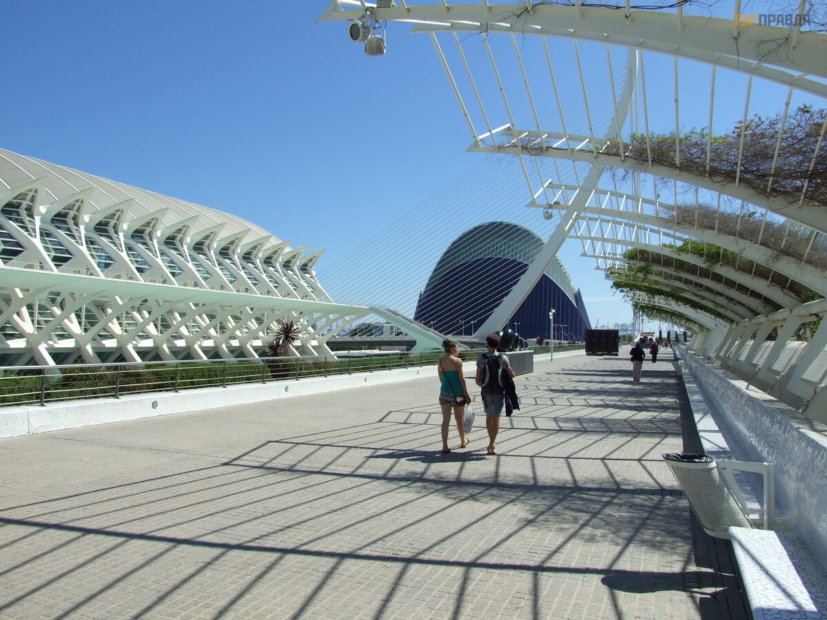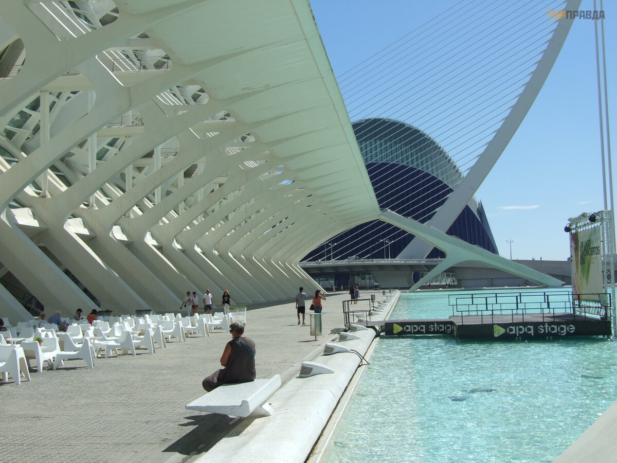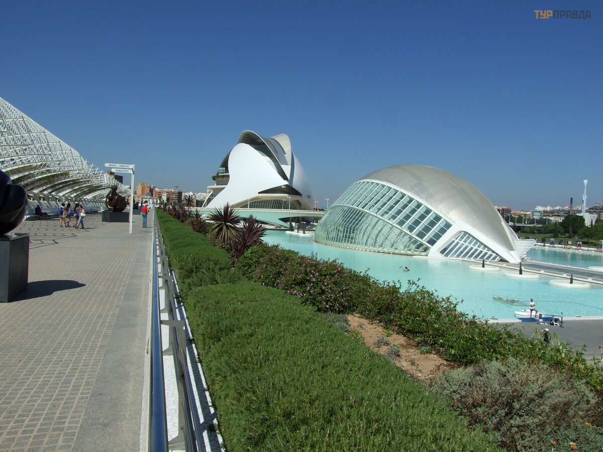 Pirmiausia aplankė me Menų ir mokslų miestą . Jis yra senosios Turia upė s vagos vietoje. Architektas Santiago Calatrava suprojektavo iš skirtinį modernų penkių pastatų kompleksą (okeanografinis parkas, planetariumas, operos teatras, mokslo muziejus ir sodo galerija).