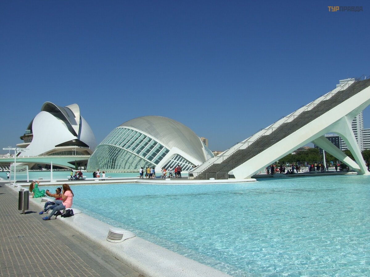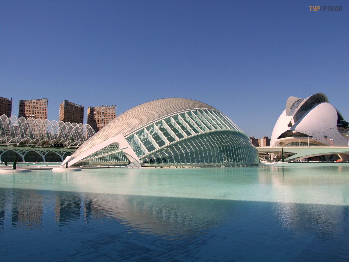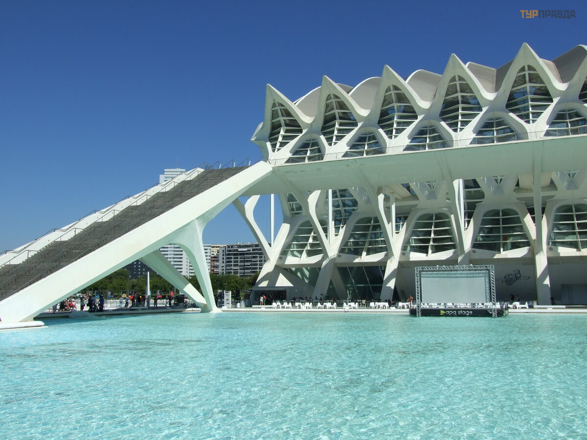 Pirmiausia aplankė me Menų ir mokslų miestą . Jis yra senosios Turia upė s vagos vietoje. Architektas Santiago Calatrava suprojektavo iš skirtinį modernų penkių pastatų kompleksą (okeanografinis parkas, planetariumas, operos teatras, mokslo muziejus ir sodo galerija).