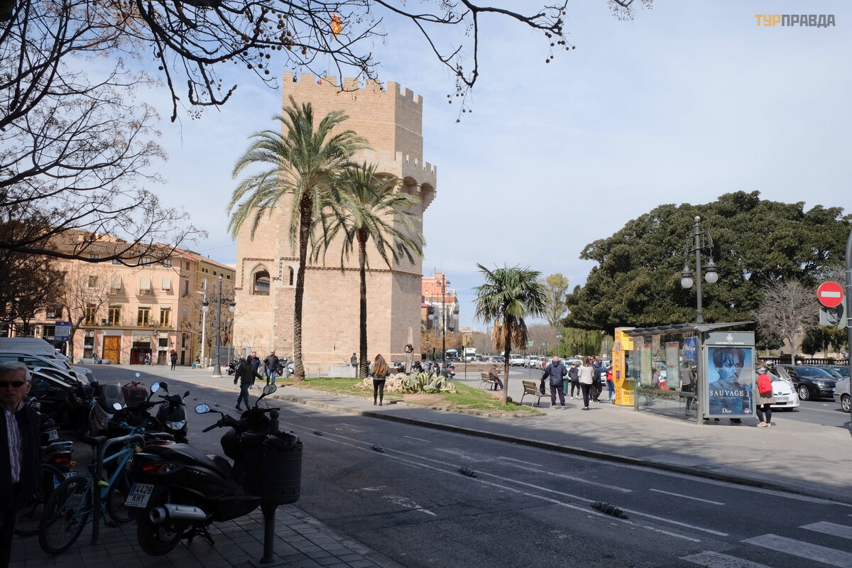 Tač iau turiu daug nuotraukų iš istorijos apie Š iaurė s Ispaniją . Tada važ iavome į patį miestą pro Torres da Serranos bokš tus, pastatytus dar XIV amž iuje.