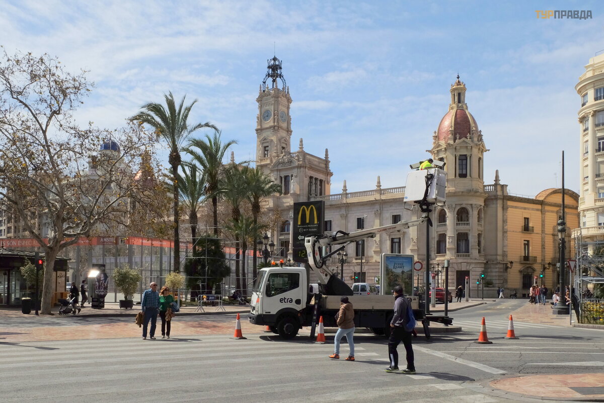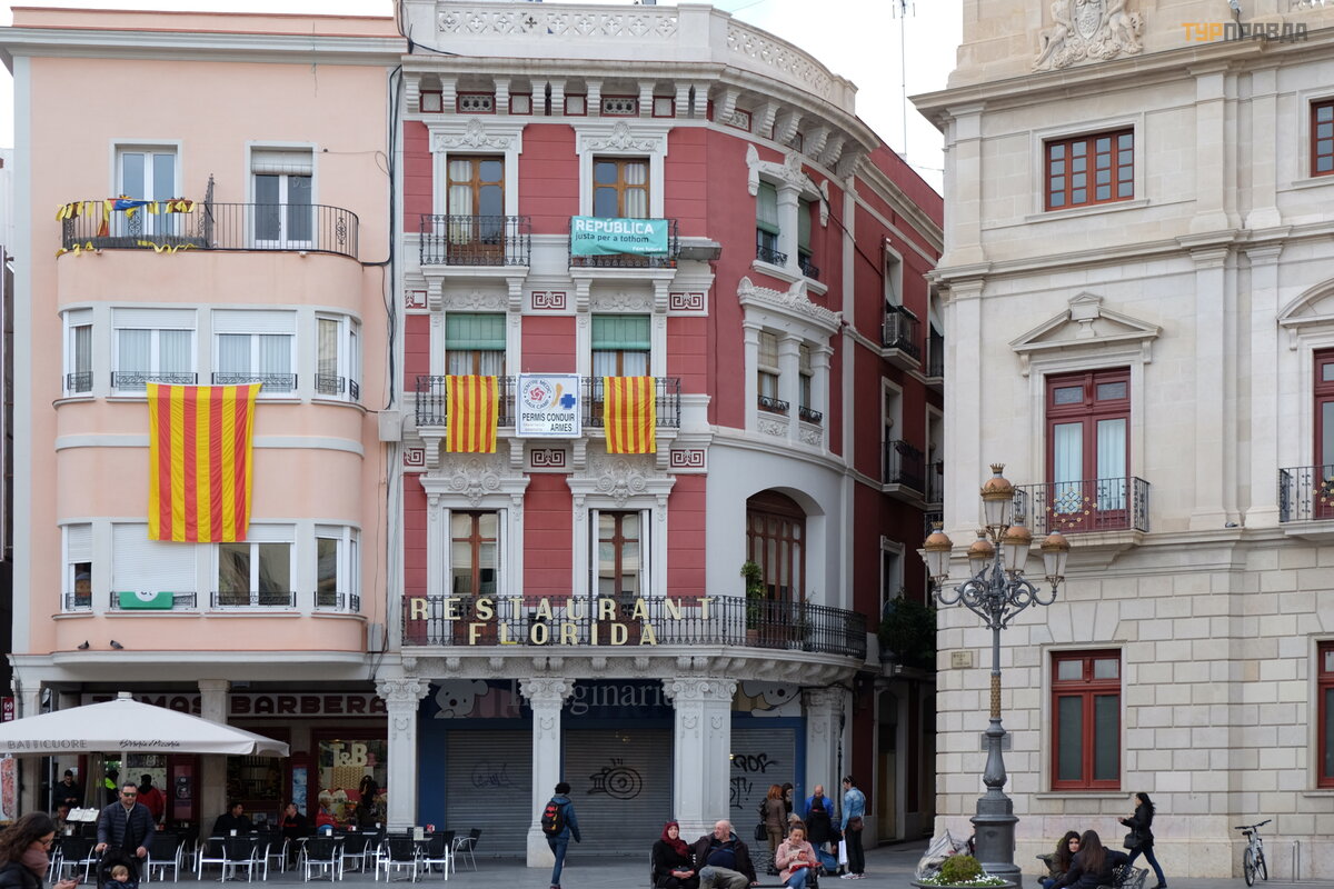 Didž iajai savaitei aikš tė je ruoš iamos tribū nos. Prieš ais vienas kitą iš sidė stę graž iausi aikš tė s pastatai: savivaldybė (rotuš ė ), XX a. pradž ios pastato fasadas, dalis XVIII a. pastato. Ant herbo karū na, virš kurios yra š ikš nosparnis, vienas iš miesto simbolių (pagal legendą , pelė sė dė jo ant karaliaus Jaime 1 š almo mū š yje su musulmonais ir iš gelbė jo jį nuo strė lė s )