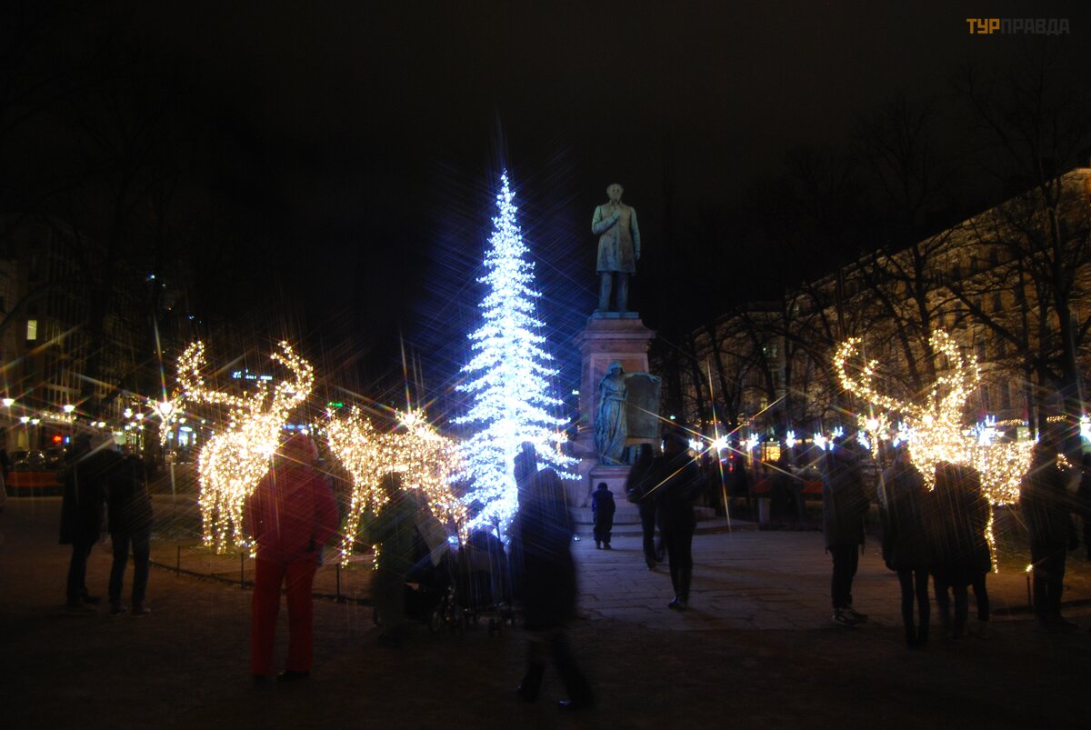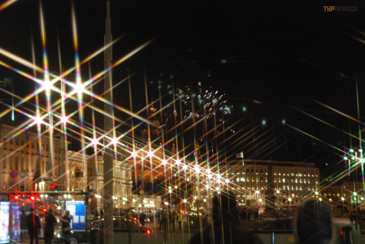 Нужно сказать, что 90% жителей Хельсинки, встречают Новый Год на главной площади города - Сенатской, рядом с кафедральным собором. Прежде чем пойти на площадь, мы прошлись по самому городу. Что это было за зрелище! ! ! Весь город сиял как новогодняя ёлка! ! ! Хотя нет, весь город был одной сплошной ёлкой.