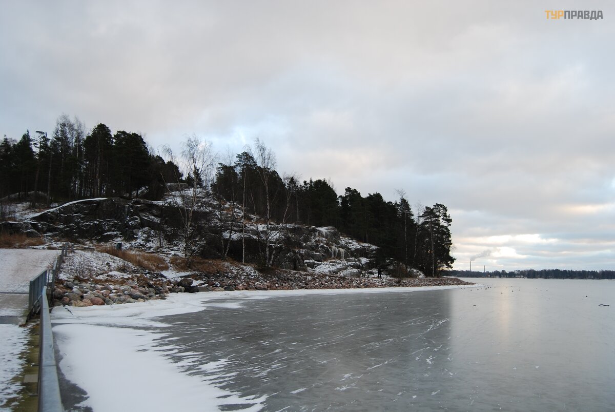 Моему взору открылась неописуемая красота! ! ! В замёрзшей поверхности моря, как в зеркальной глади, отражались подсвеченые солнцем облака. Невзирая на пасмурную погоду, хотелось всё смотреть и смотреть на эту картину, хотелось запомнить всё до мельчайшей подробности, так сказать, впитать в себя красоту финской природы.