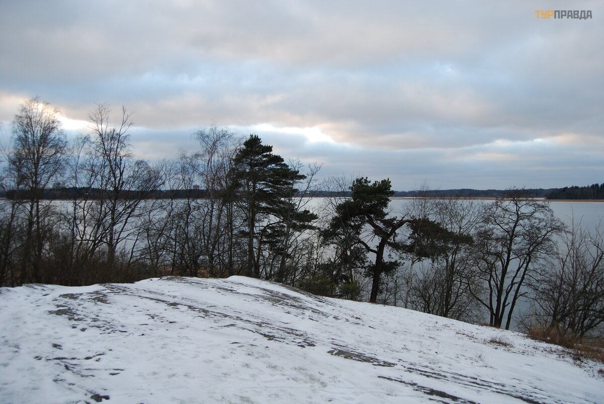 Красота - красотой, но на берегу залива холод пронизывает, казалось, до костей. Я уже было подумала, что пора и пойти куда-то погреться, но тут заметила что Артур ходит по берегу и что-то выискивает. Первой мыслью было: - наверно тут попадается янтарь, мы ж всё-таки на берегу Балтийского моря... Оказалось, всё намного проще и одновременно намного интересней. Артур искал подходящий камень. Если вы присмотритесь к фотографии, то заметите, слева, возле деревьев, на льду, много точек. Не думайте, ваш монитор чистый, и это не брак фотографии, это всего-навсего финский аналог игры "Бочча". Прогуливающиеся по берегу финны, бросают на лёд камни, принцип игры тот же что и Бочча- выбить камень противника, вернее бросить свой камень так, чтоб он сдвинул какой-то из камней, и при этом продолжил скользить по льду. На первый взгляд кажется бред, но на самом деле очень завлекает и очень даже согревает. Когда бросаешь камень на лёд, раздается такой гулкий звук, камень сначала несколько раз подпрыгивает а потом начинает скользить. Я не думала что бросание камней может быть такой азартной игрой. В конечном результате, я вошла в такой азарт, что Тане с Артуром пришлось, практически силком, тянуть меня домой. На следующий день у нас по плану была поездка на финскую дачу и нам нужно было хорошо отдохнуть и набраться сил для новых впечатлений.