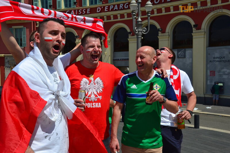 И вот мы въезжаем на Promenade des Anglais: лазурное море, солнце, пальмы, заполненные пляжи. Немного настораживают люди в бело-красных одеждах. Делаю логическое заключение – это поляки. Неужто кто-то играет в Ницце? Отбрасываю от себя эту мысль. Но «красно-белых» становится все больше. К ним же присоединяются и «зеленые».