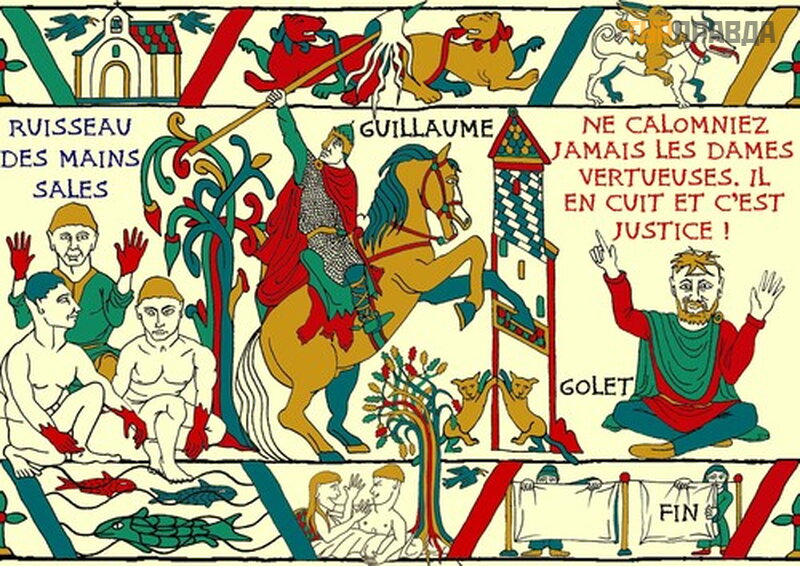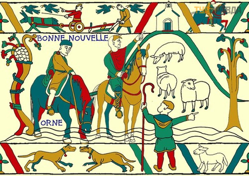 Нашла очень интересную вещь на одном из французских сайтов. Преподаватель истории, вице-президент Комитета по туризму департамента Кальвадос Gilles Pivard, изучив известные Шпалеры Байо XI века, издал для молодежи книгу в виде комиксов. Она рассказывает о жизни и подвигах герцога Нормандии и короля Англии Вильгельма Завоевателя.