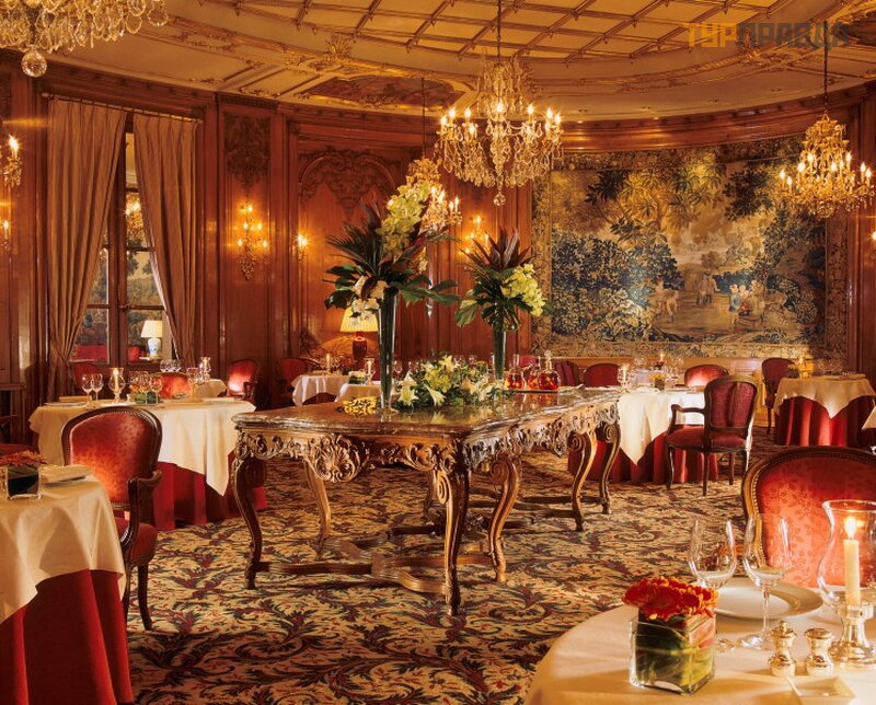 Интереснейший администратор провел нас в салон-библиотеку и предоставил нам карты-меню для изучения. Мы хотели взять по одному блюду (так как цены все-таки обязывают) и уже определились с выбором, но наш администратор нарушил эти планы. Два слова о нем (администраторе): невысокого роста, худощав, лысый, аккуратный, некрасив, но харизма!!! Не нагружая, он убедил нас взять гастрономический обед (всего 49 евро). Меню действительно было изысканное: закуска – гребешки, основное блюдо – исключительная рыба и прелестный десерт. Напитки не были включены, поэтому мы закали маленькую бутылку Шабли. Зал постепенно наполнялся и мы заметили, что практически все присутствующие заказывали le déjeuner gastronomique. Вот это мастерство (я об администраторе)!