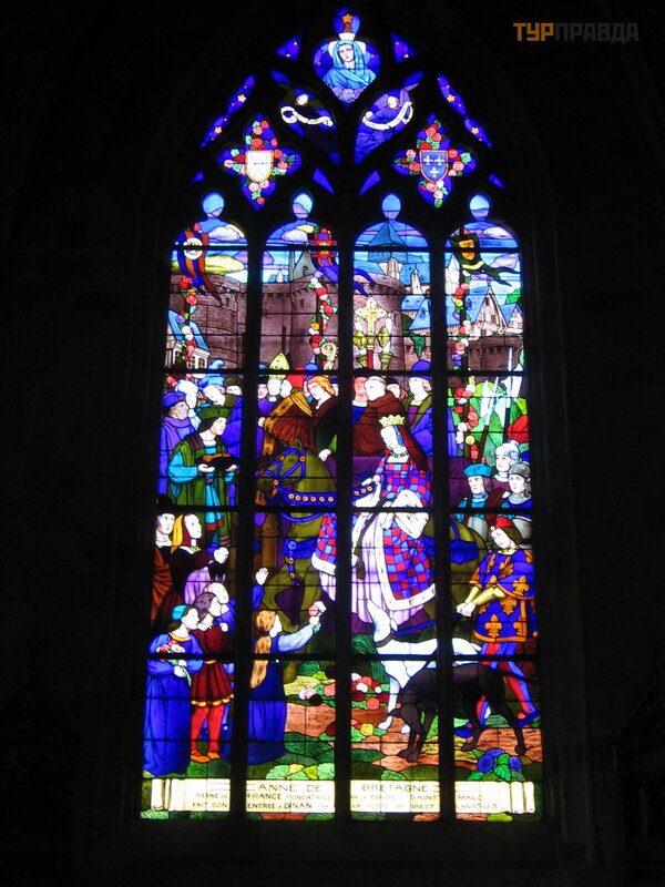 Vitraž as, vaizduojantis Anos atvykimą į Dinant Sen Malo mieste