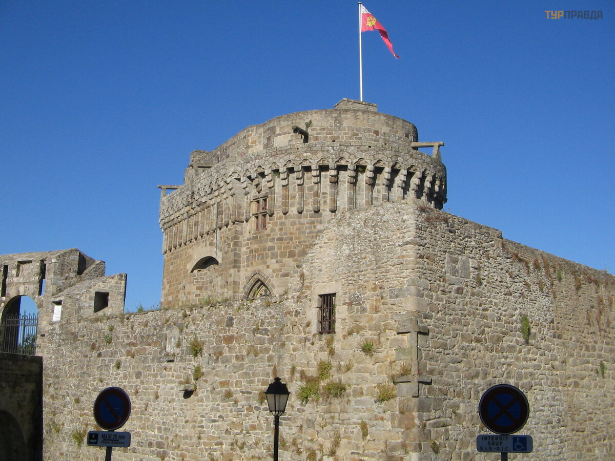 Pilis (joje yra muziejus) yra retos ovalo formos, sudarytos iš dviejų sujungtų bokš tų . Donž onas buvo pastatytas vadovaujant Jeanui IV XIV amž iuje. Netoliese yra Sargybos bokš to vartai. Buvę s griovys po donž unu dabar vadinamas Velnio sodu (vakarinė sienų dalis). O netoliese yra buvusi turgaus aikš tė , susidedanti iš dviejų dalių skirtingais pavadinimais: Du Guesclin (su paminklu konstebliui) ir Fields. Per revoliuciją č ia buvo giltinė , o dabar – automobilių stovė jimo aikš telė .