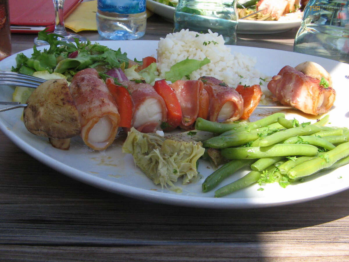 Kita stotelė yra Perros-Guirec. Č ia pietaujame. Nusprendė me iš bandyti Š v. Jacques kepsninė s pavidalu, nes paliekame Lamanš o są siaurį toliau. Ant miestelio herbo dedamos š ukutė s. Bet ne todė l, kad č ia jie skiriasi kokiu nors ypatingu skoniu ar gyvena masiš kai, o todė l, kad č ia praė jo vienas iš marš rutų iš Britų salų palei Biskajos į lanką į Santjago de Kompostelą , kurios emblema yra š i š ukutė .