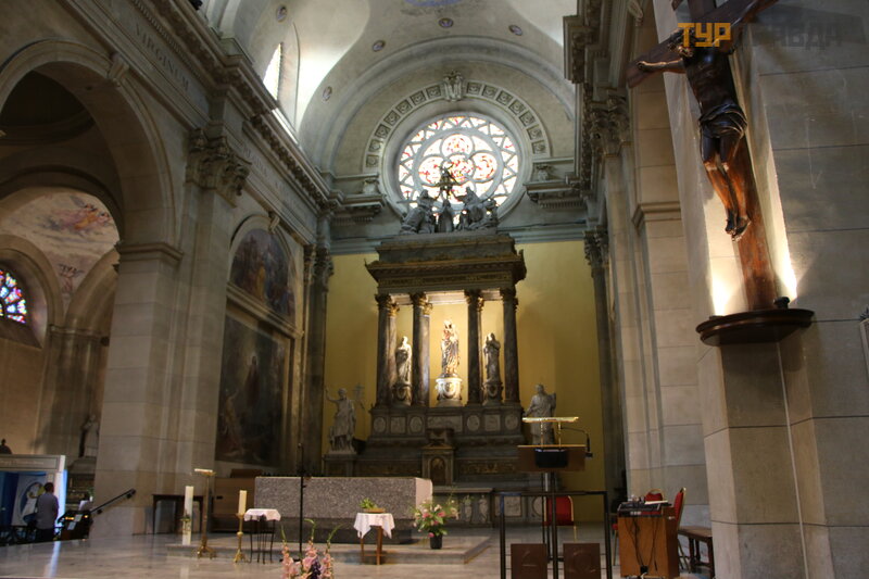А это церковь Нотр дам Де Льес. От первоначальной церкви осталась только колокольня. Сама церковь во время революции была разрушена и восстановлена только в 1850 г. в неоклассическом стиле. Зашли мы и во внутрь, особой красотой она не блещет, но все же посмотреть есть что.