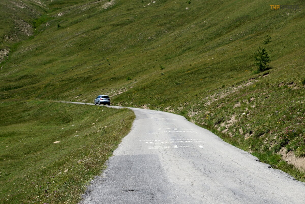 Paž iū rė ję s į aplinkinį grož į , patraukiau toliau į kalnus Italijos link. Kelias vietomis toks siauras, kad kartais tekdavo atsitraukti, kad pravaž iuotų atvaž iuojantį automobilį . Tarsi dvi avys susitiko siaurame take. Nė vienas iš jų nenorė jo už leisti vietos vienas kitam. Esu sveč ias, todė l pirmasis už leido kelią atvaž iuojanč iam automobiliui. Siauras keliukas atvedė į aukš tą ją perė ją , kur kelio visai nė ra, o vos ne vienas takas. Ilgą laiką juo lipau į kalną , ko negalima pasakyti apie motociklininkus. Jie, kaip saviž udž iai sprogdintojai, skuba dideliu greič iu, kur net vaikš č ioti pavojinga. Pasiekę s perė jos sol d Allos aukš tį.2250 metrų virš jū ros lygio, sustojau pailsė ti. Graž us vaizdas į aplinkinius kalnus ir kalnus. Ž iemą , atrodo, dar graž iau. Pavaikš č iojus ž ole, kiek pagulė jus, už teko tyro kalnų oro, atsigė riau tyriausio kalnų vandens ir vė l patraukiau link Italijos.