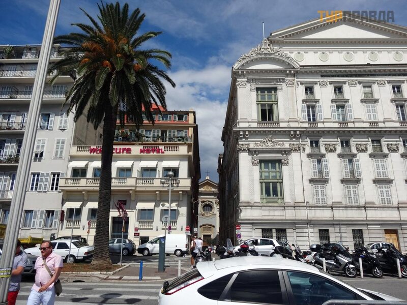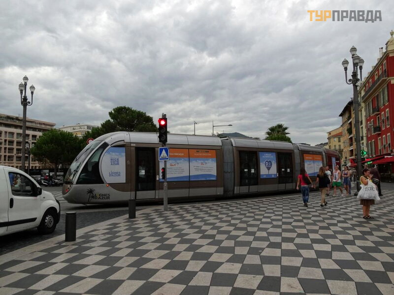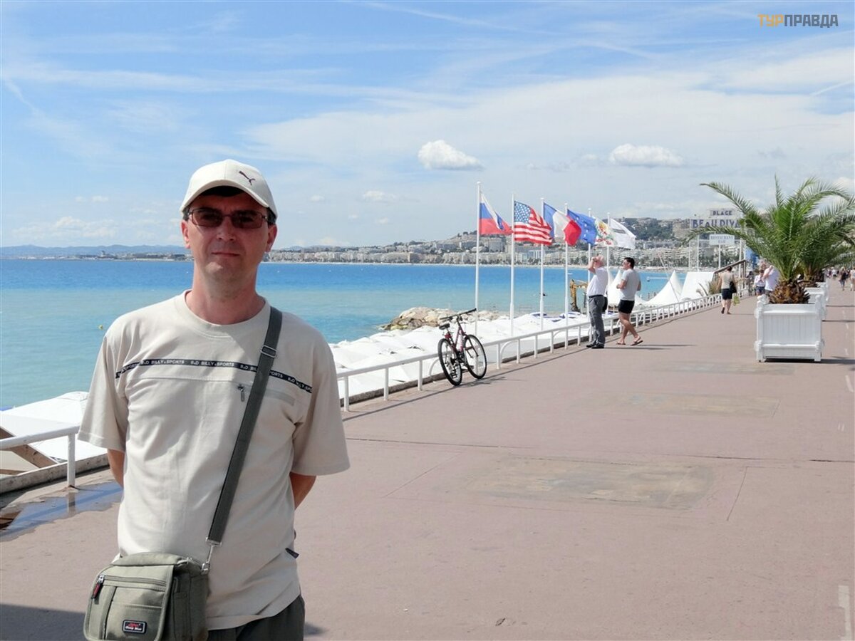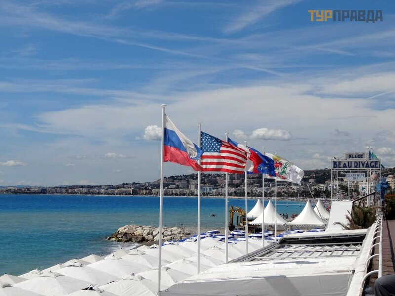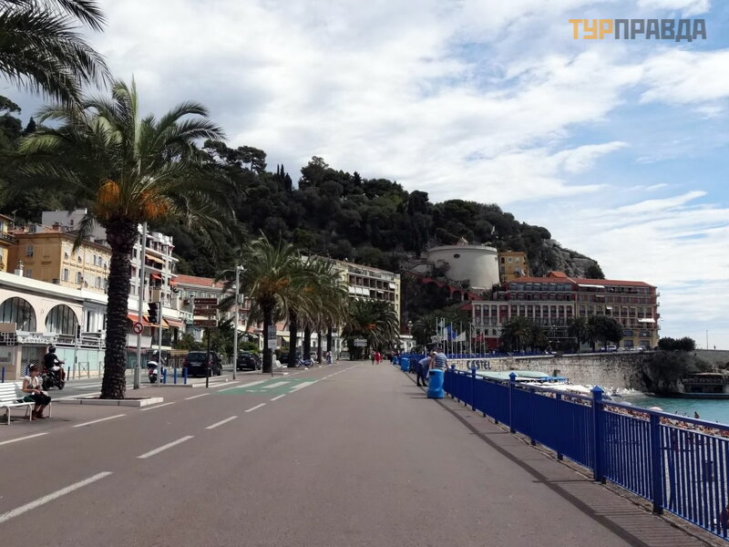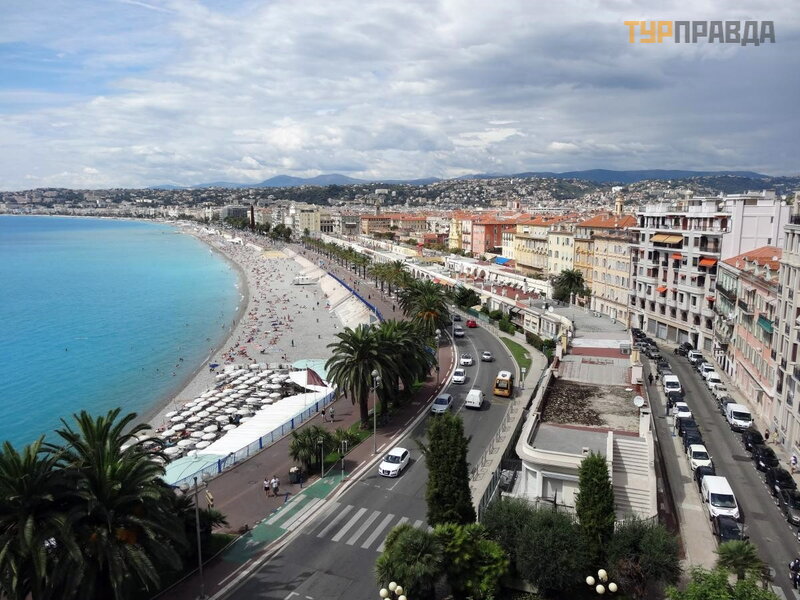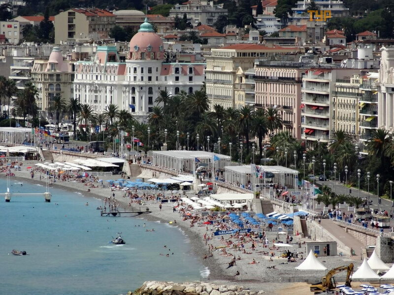 12-50 pasirodė jū ra ir tarptautinis Nicos oro uostas, kuriame lė ktuvai leisdavosi kone kas minutę , prieš nusileisdami raš ydami į domius posū kius virš jū ros. Tada važ iavome garsią ja Promenade des Angle, pro garsų jį vieš butį Negresco ir 13:00 sustojome prie Albert I parko.